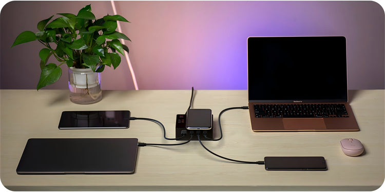 Dieses Ladegerät kennt keine Kompromisse. Es verfügt über drei USB-C-Ausgänge, von denen es gleichzeitig bis zu 65 W beziehen kann. Insgesamt sind 195W. Eine weitere USB-A-Buchse, die bis zu 24 Watt liefert und zudem über eine induktive Ladefläche mit einer maximalen Leistung von 15 W verfügt, die das Smartphone ebenfalls perfekt laden kann – wenn auch deutlich langsamer als ein USB-Kabel – C. Normalerweise verwende ich alle drei 65-W-USB-C-Anschlüsse, manchmal alle gleichzeitig, und hatte bisher keine Probleme.
