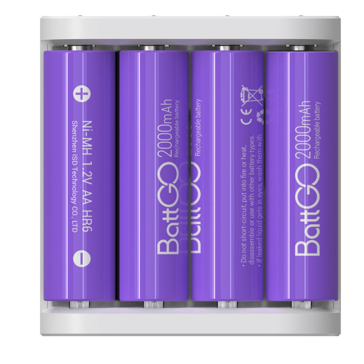 ⚡ 【Convenient Operation】AAA battery charger with 4 independent multi channels,up to 10A current output on each slot,perfectly compatible with phone power adapters,USB ports,portable power banks and car chargers,auto-matching with the USB charging devices output power. Fast charging is possible when combined with a QC adapter.