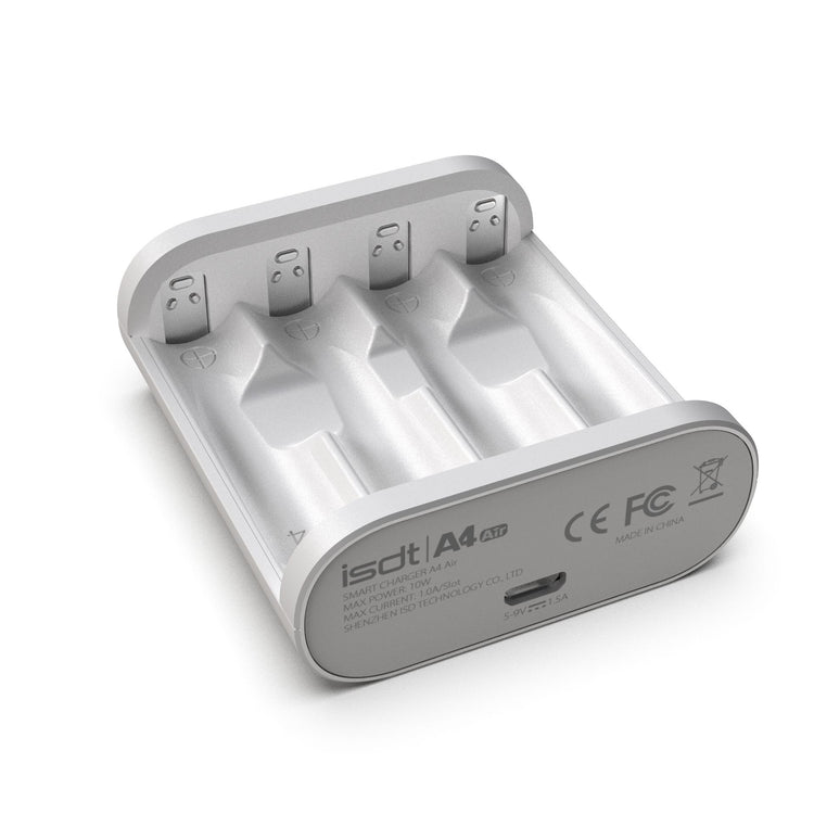 ISDT A4 Air 4-Bay AAA Battery Charger 18W AA Smart Battery Charger USB Input Househould battery Charger Wireless Operation for Rechargeable AA 10500 12500 Ni-MH/CD LiHv LiFePO4 Eneloop Battery