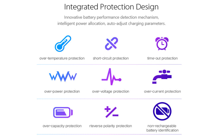 ⚡ 【Integrated Protection Design】Innovative battery performance detection mechanism, intelligent power allocation, auto-adjust charging parameters.