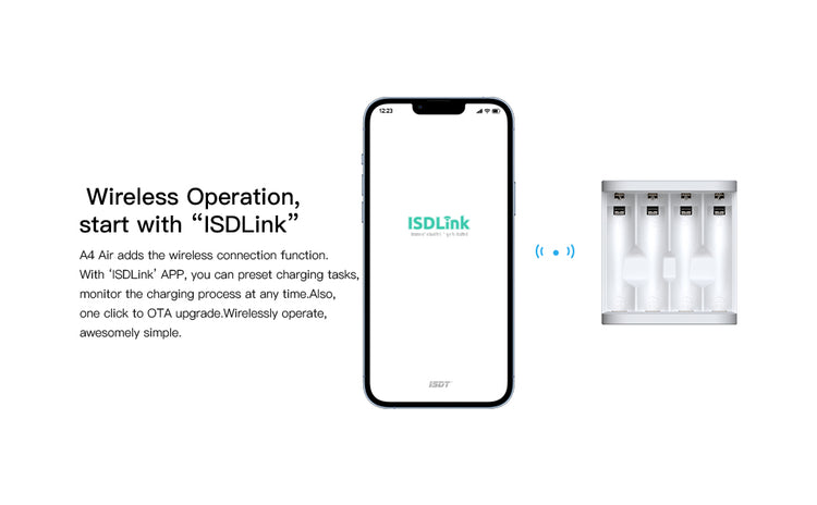 ⚡ 【Wireless Operation,start with “ISDLink”】ISDT A4 Air adds the wireless connection function.With ‘ISDLink’ APP, you can preset charging tasks,monitor the charging process at any time.One click to OTA upgrade.Wirelessly operate, awesomely simple.