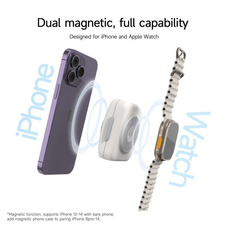 ⚡【Designed for iPhone and iWatch】The double-sided wireless charging ports of the PB25 DW power bank all support the magnetic charging function, plus its compact size, you can almost ignore its existence when using it to charge your iPhone and iWatch.
