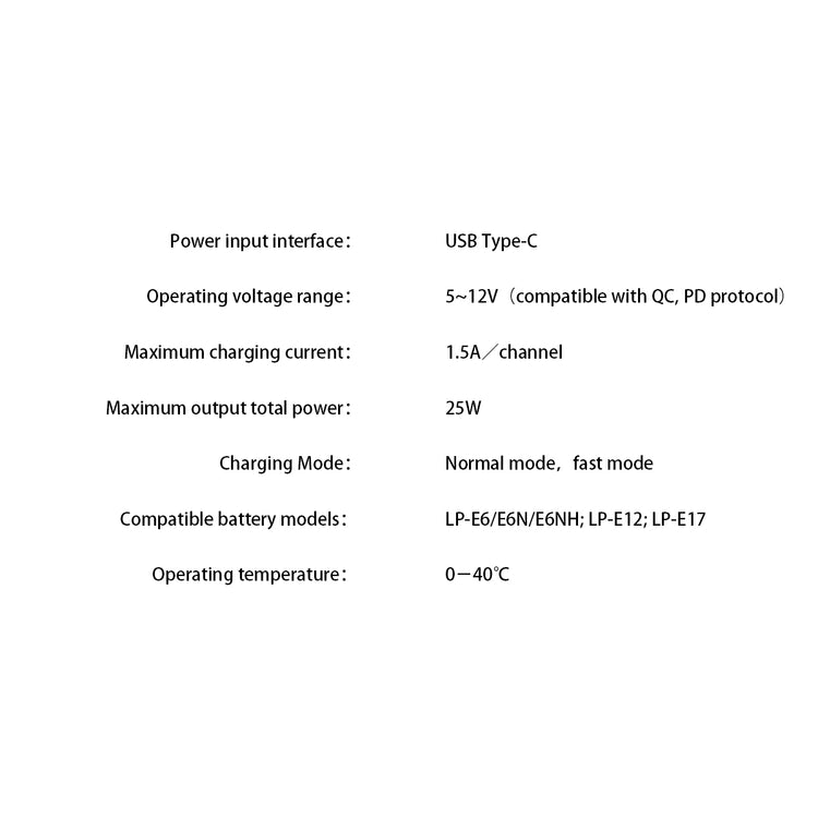 Compatible battery models: LP-E6/E6N/E6NH;LP-E12;LP-E17