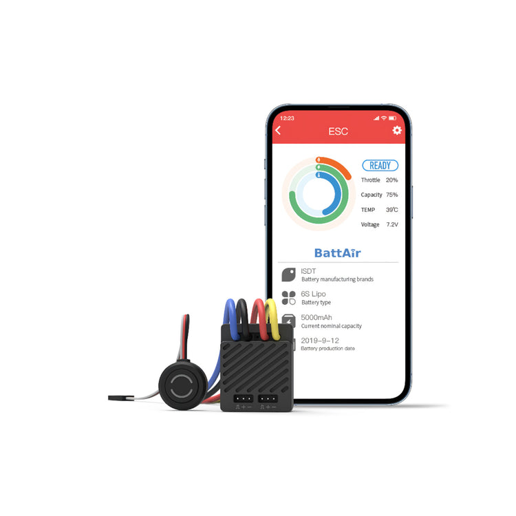 【Smart brushed esc 1/10】 Advanced electronic switch and Bluetooth two-in-one module, Support real time operating parameter and status via the ISD Go APP.